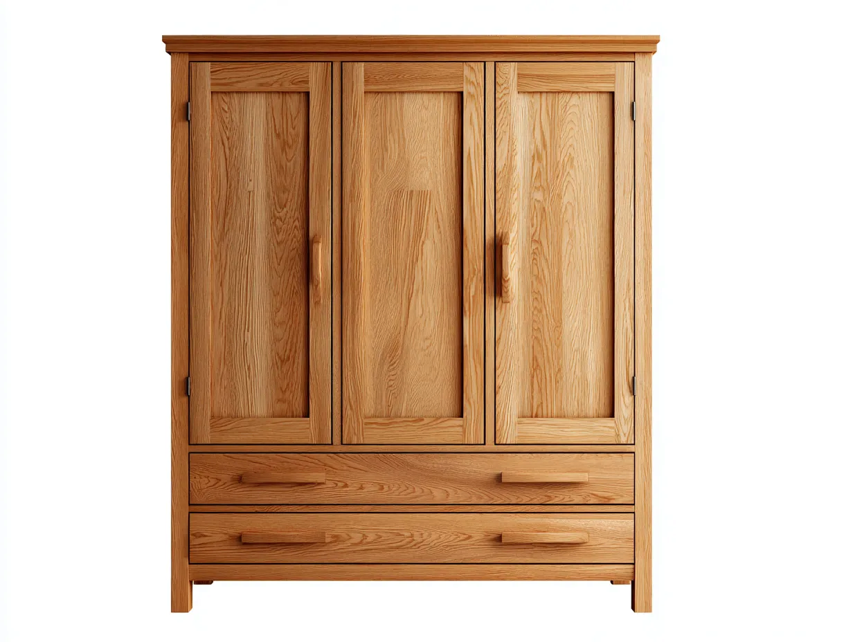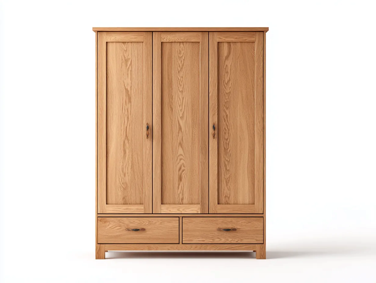 Armadio a 3 ante-Legno massello-150x55x200 cm-Rovere chiaro-Stile naturale