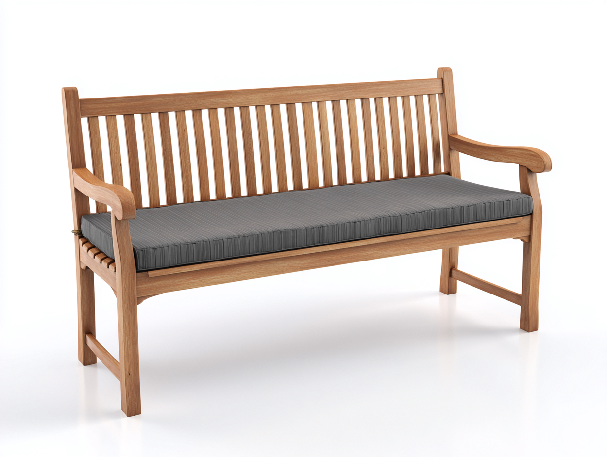 Panca da giardino in legno con seduta imbottita 150x55x90 cm - naturale e grigio - stile classico