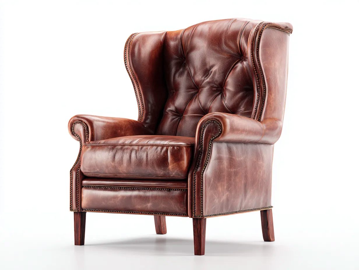 Poltrona a orecchioni-pelle-legno-90x84x104 cm-marrone-stile classico